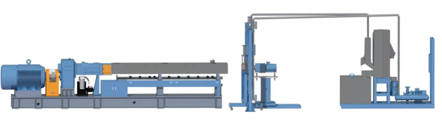 該系統(tǒng)通常包括模頭,切粒小車(chē),旋風(fēng)分離、振動(dòng)輸送等。